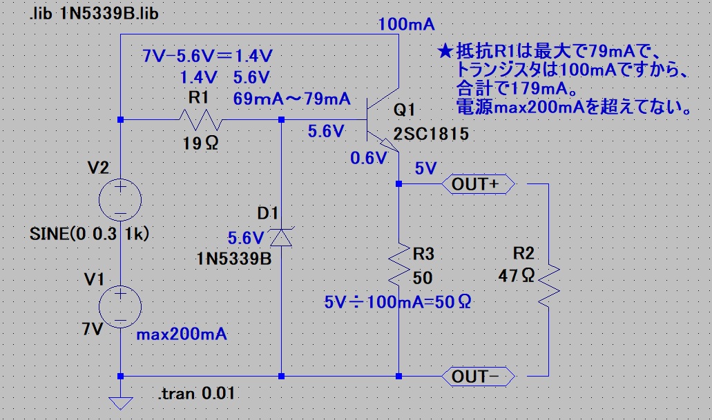 定電圧回路にトランジスタを加えてみた。
